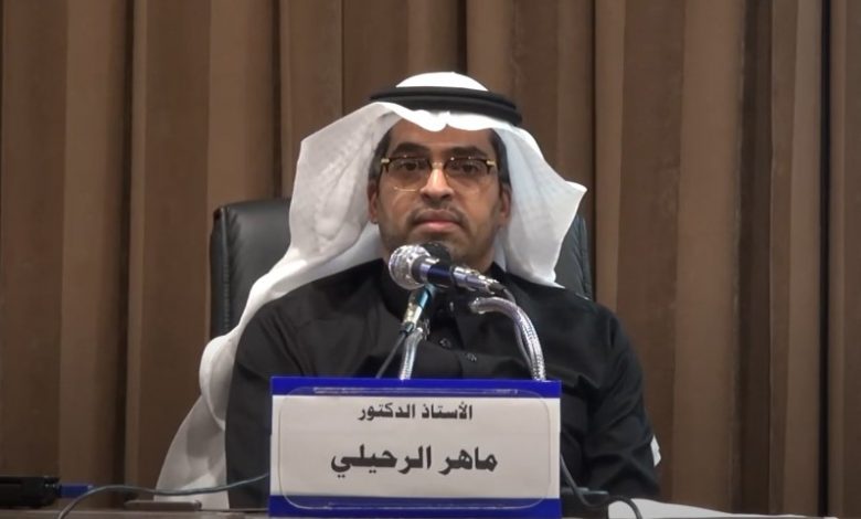 ألقى عميد كلية اللغة العربية بالجامعة الإسلامية الدكتور ماهر بن مهل الرحيلي، الليلة، محاضرة بعنوان «سنوات مع الذات والقل